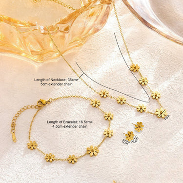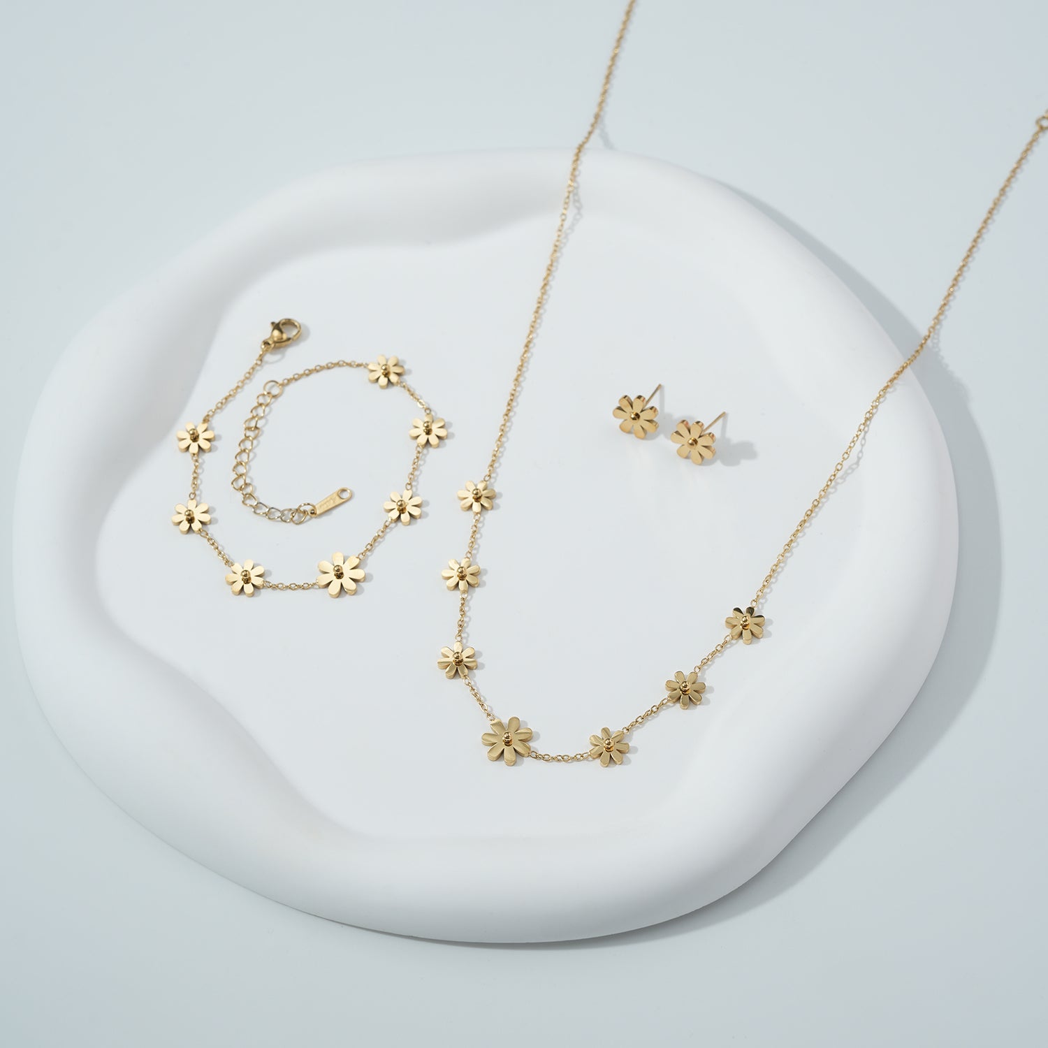 Floral Bloom Necklace, Earring, Bracelet Set | 18K Plated