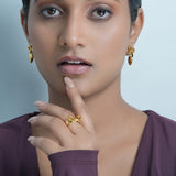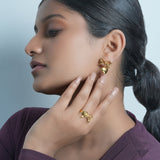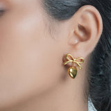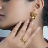 A graceful and elegant set featuring a dainty bow with heart drop studs and ring, elevates your casual or party wears
