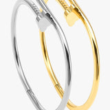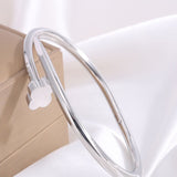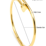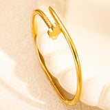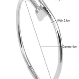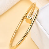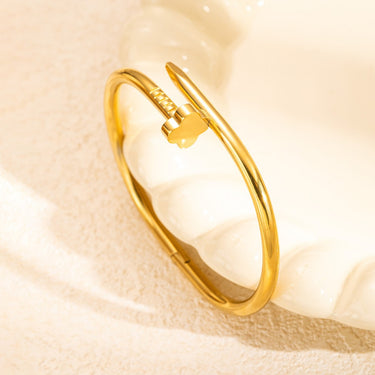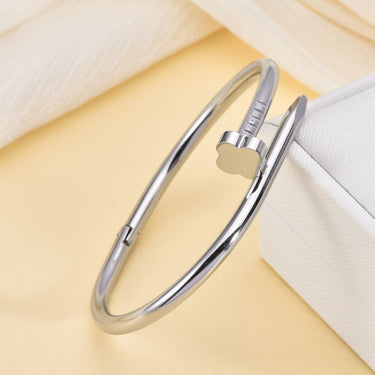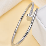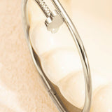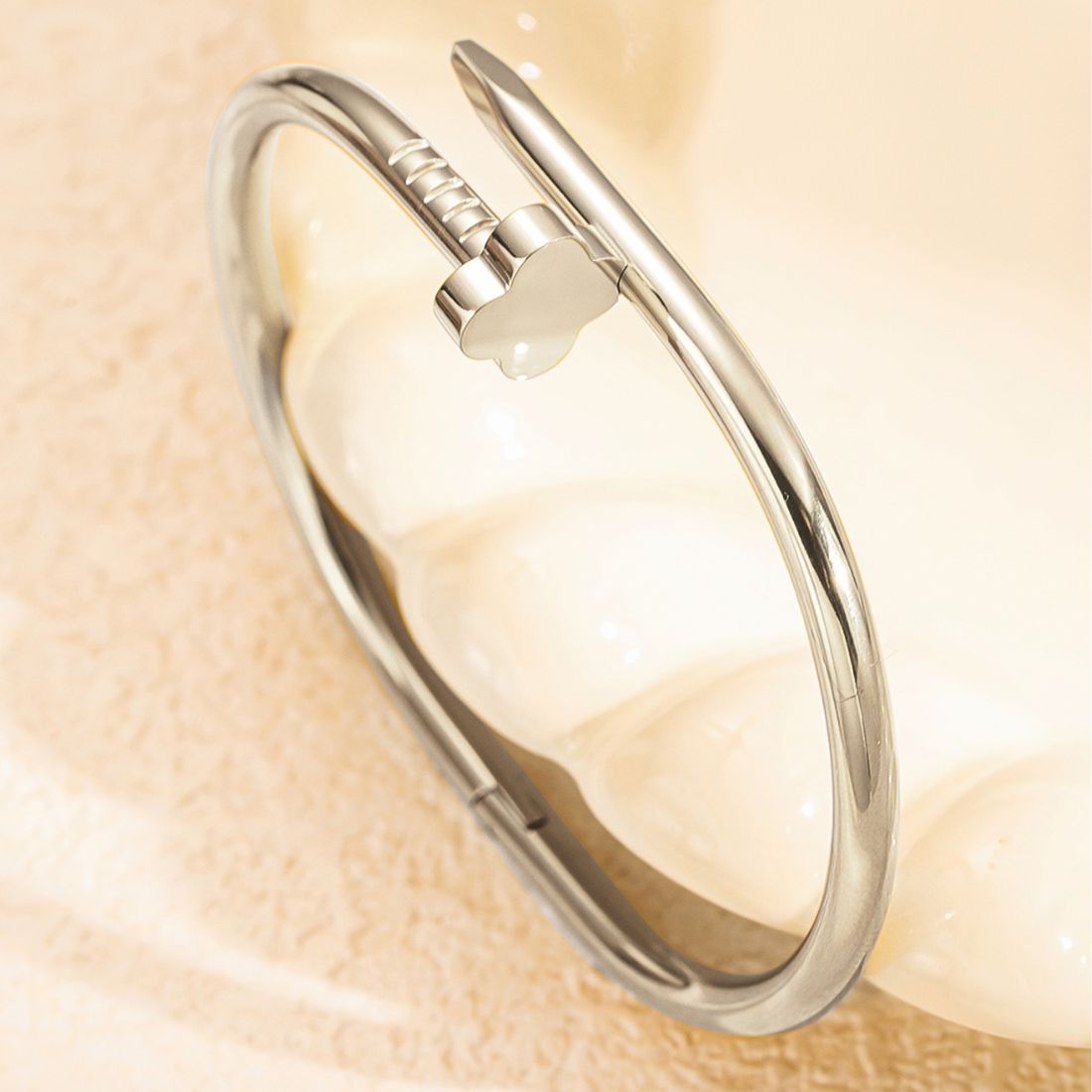 Clover motif symbolizes luck and positivity. A bold yet elegant combination of a nail design with a lucky clover. Order your clover bracelet today. The high polish metal surface gives a premium look. To open the bangle, unhinge at the clover design.