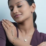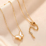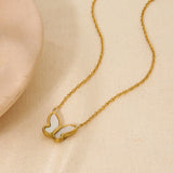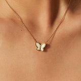 A delicate and nature-inspired necklace featuring a butterfly with a white shell detailing.