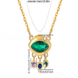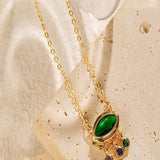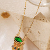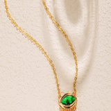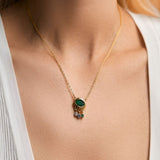 An elegant and refined necklace featuring a striking green oval pendant with zircon drops.