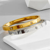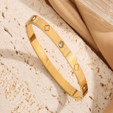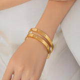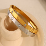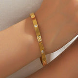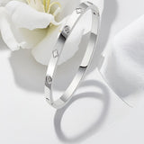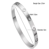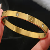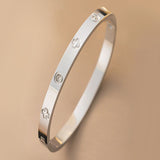 Clover motif symbolizes luck and positivity. Bring in luck with this clover and zircon encrusted bangle. Order your clover bracelet today. Makes the perfect gift for friends needing luck. The high polish metal surface gives a premium look.