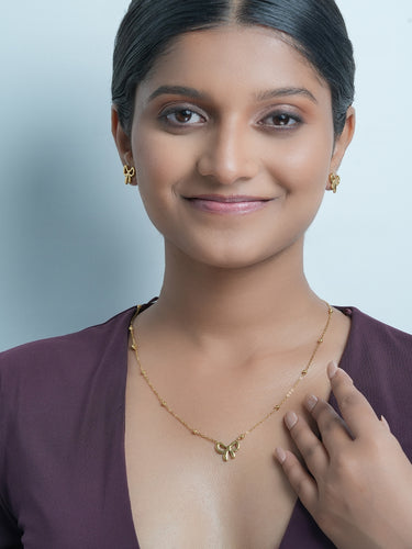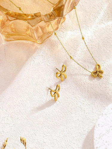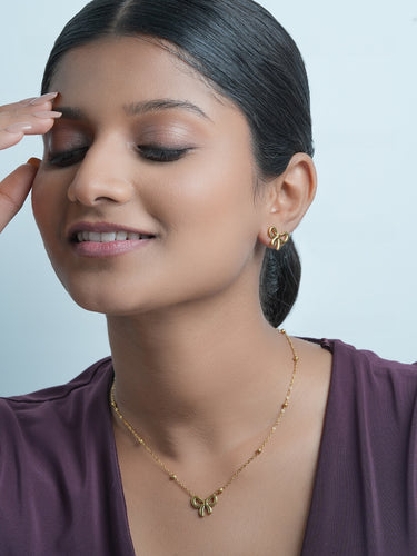 A timeless and elegant necklace set featuring a dainty bow pendant and studs for a charming look.