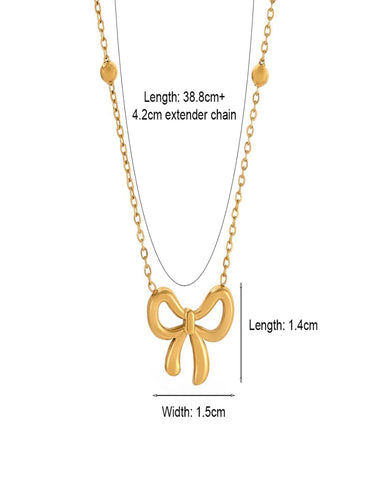 - Length of necklace: 38.8cm + 4.2cm extender chain, bow: 1.4x1.5 cm