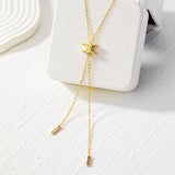 This exquisite lariat necklace features an 18K gold-plated, delicate long chain adorned with a movable double crescent moon charm. Adjust the charm to your desired length and style it your way—perfect for pairing with both casual and formal outfits.