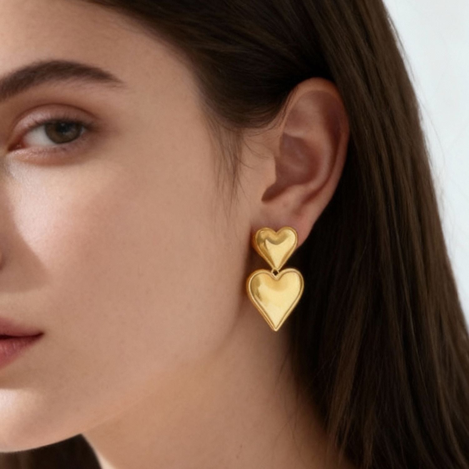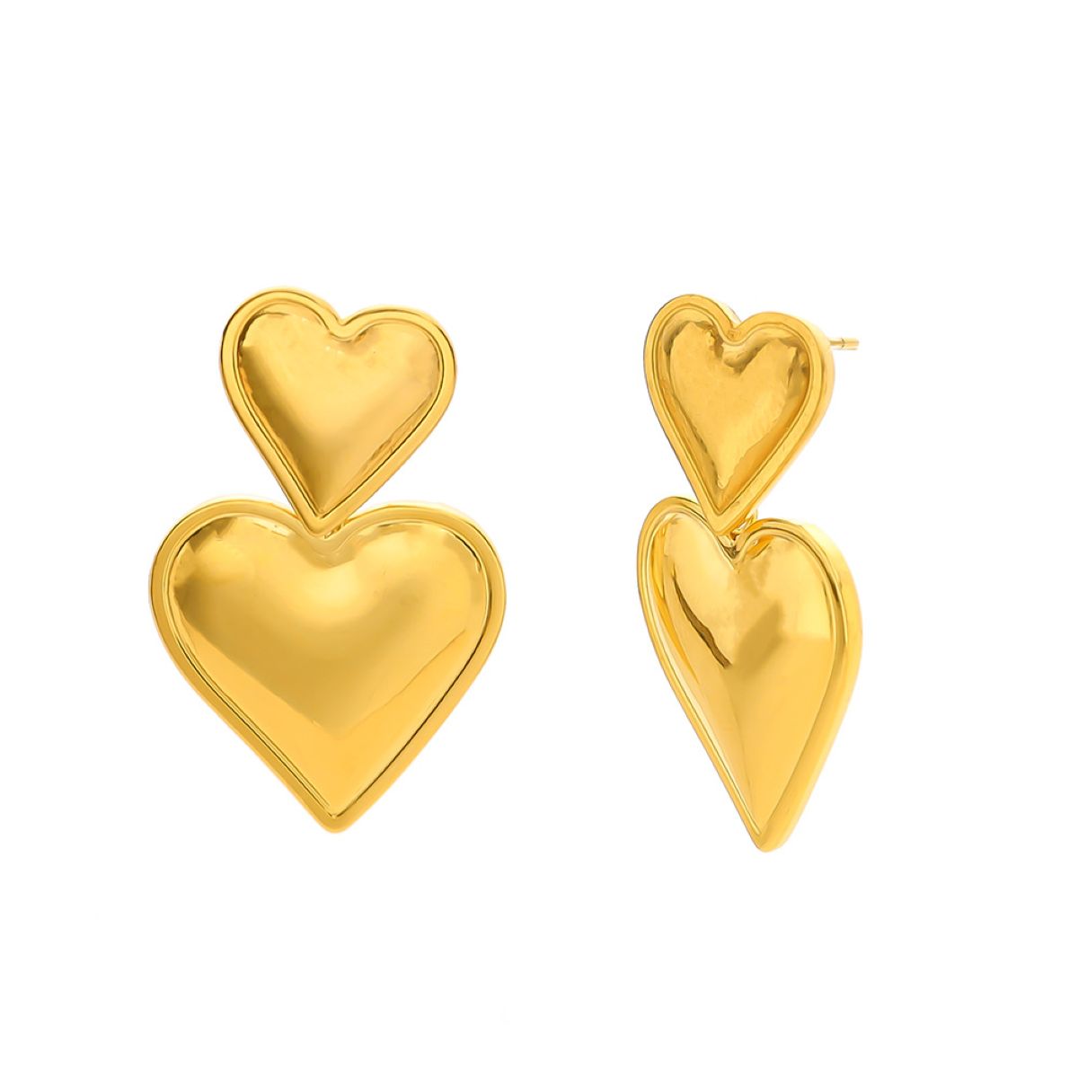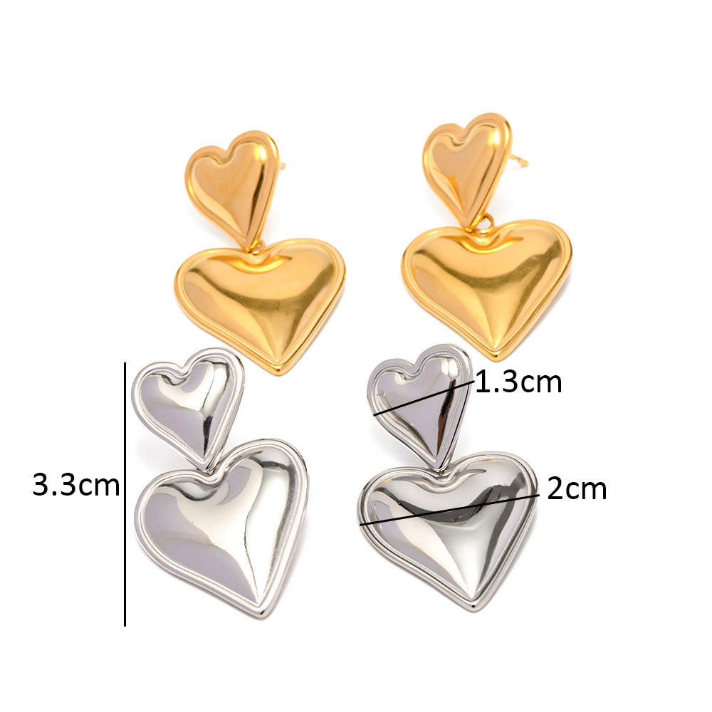 Duo Heart Drop Studs | 18K Plated