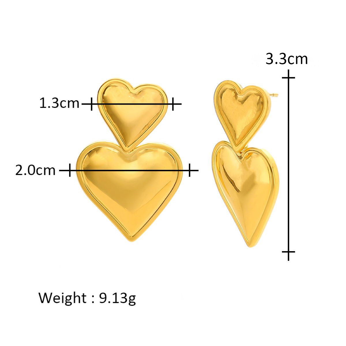 - Length:3.3 cm, width: 1.3cm small heart & big heart 2cm.