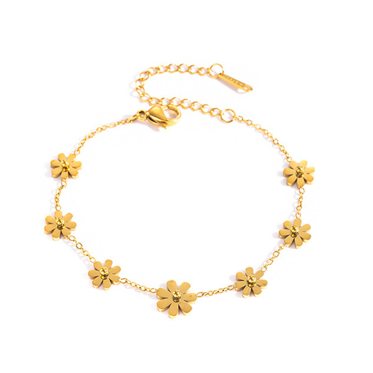 A dainty and feminine bracelet adorned with delicate floral charm design for a graceful look. It's a stunning piece of flower jewelry. The high polish metal surface gives a premium look.