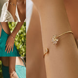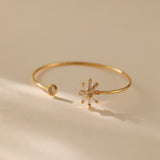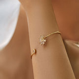 A beautifully detailed floral cuff bracelet, enhanced with shimmering zircon accents for a romantic look.