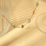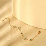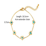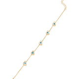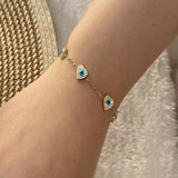 A stylish and protective charm bracelet featuring heart and evil eye motifs, elevates your everyday casual outfits