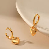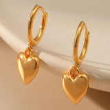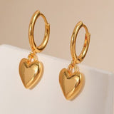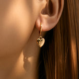 A romantic and stylish pair of huggie hoops, featuring dangling heart charms for a charming effect.