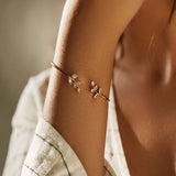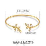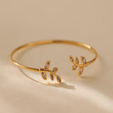 A nature-inspired cuff bracelet, featuring a delicate olive leaf design embellished with zircon stones.