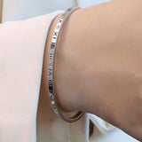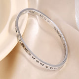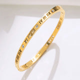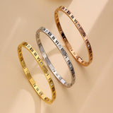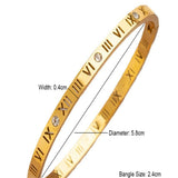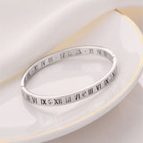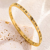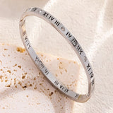A sleek and timeless openable bangle featuring classic Roman number engravings. The high polish metal surface gives a premium look.
