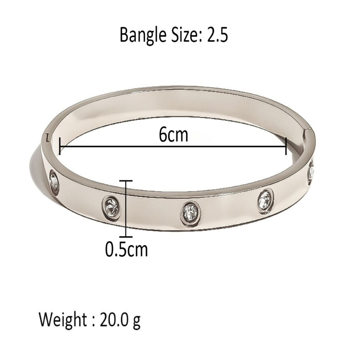 - Diameter: 6 cm, width: 0.5cm, Bangle size: 2.5