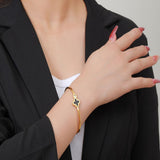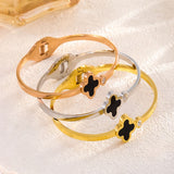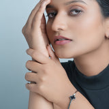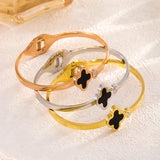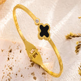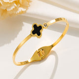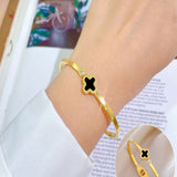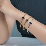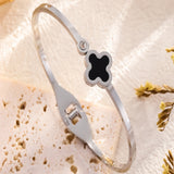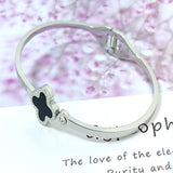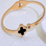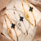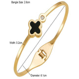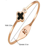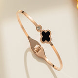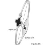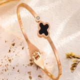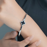 Clover motif symbolizes luck and positivity. Bring in luck with this black clover bangle with sparkling zircon accent. Order your clover bracelet today. Makes the perfect gift for friends needing luck. The high polish metal surface gives a premium look.