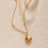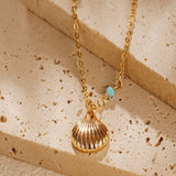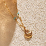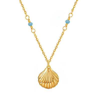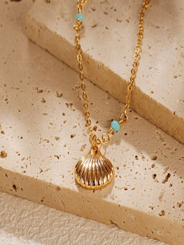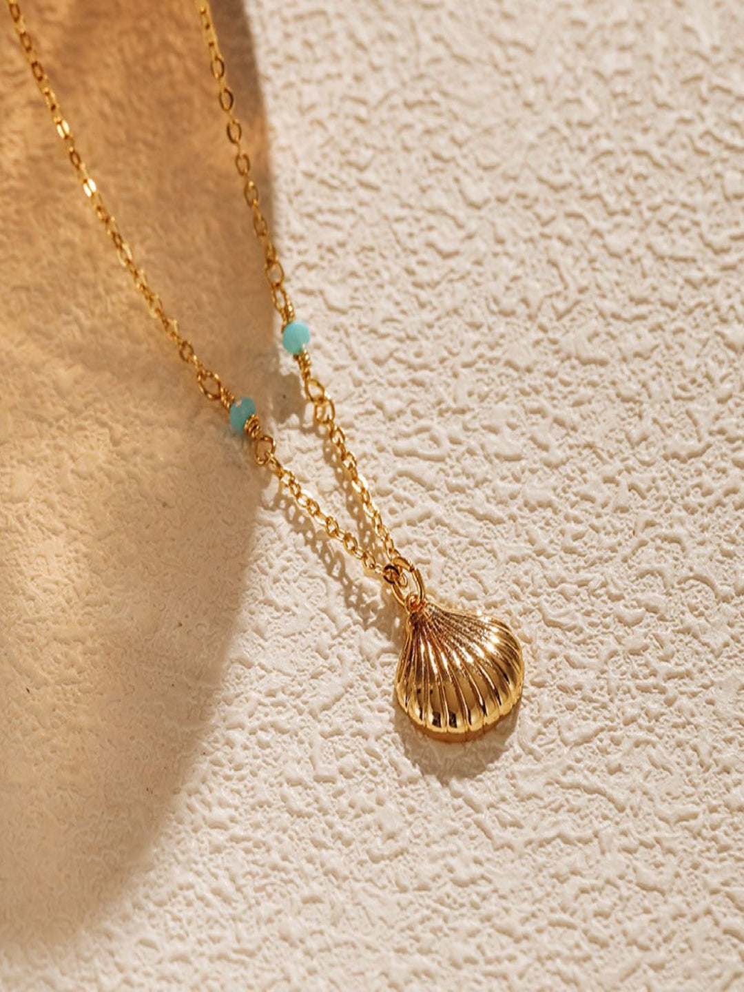 A dainty and ocean-inspired necklace featuring a delicate shell bead pendant.