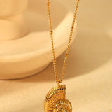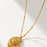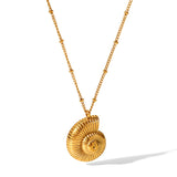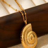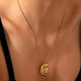 A nature-inspired design with a bold and sculptural snail shell pendant necklace. This necklace elevates your casual outfit yet giving a bold statement look