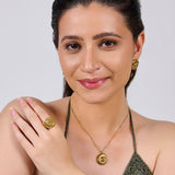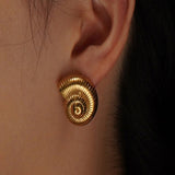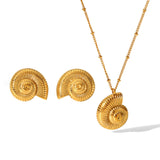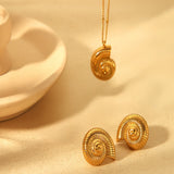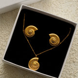 A nature-inspired design with a bold and sculptural snail shell pendant necklace and studs set. This set elevates your casual outfit yet giving a bold statement look