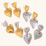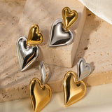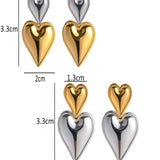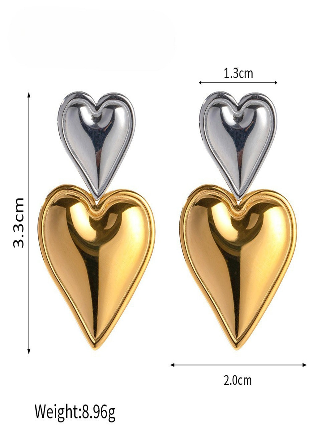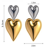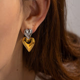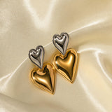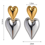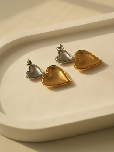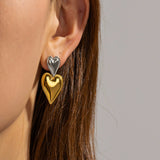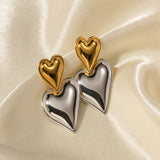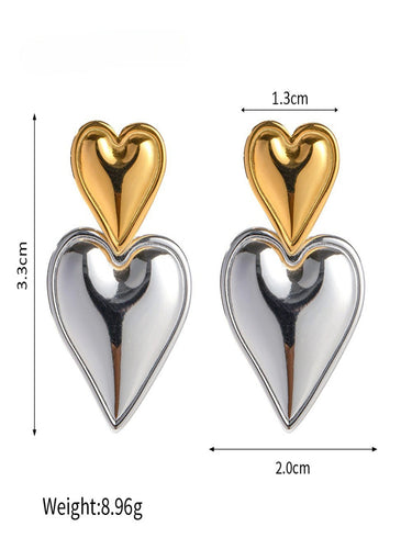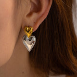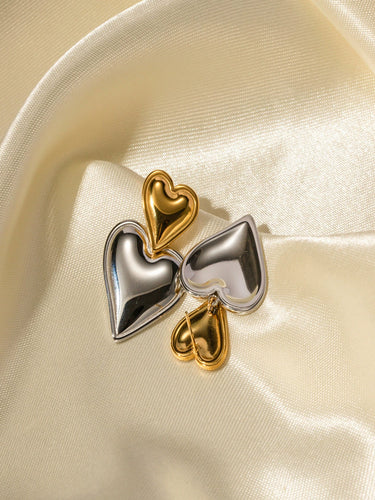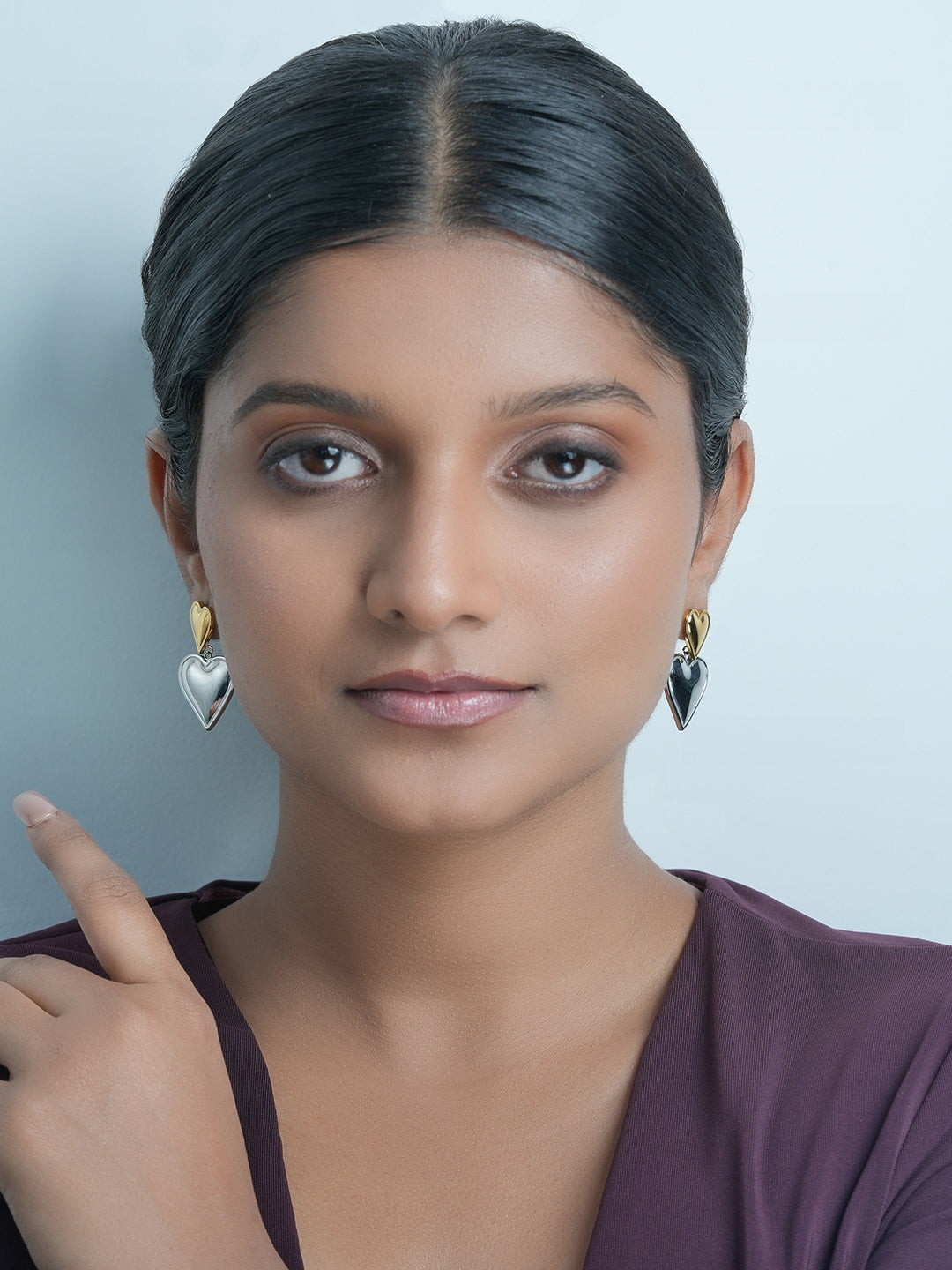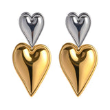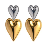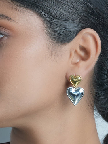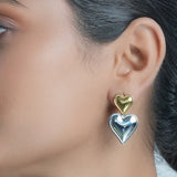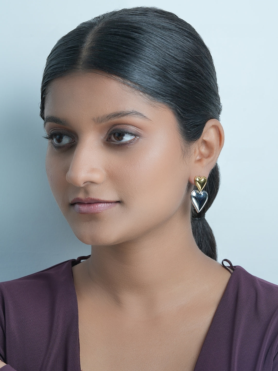 Two Tone Duo Heart Drop Studs | 18K Plated