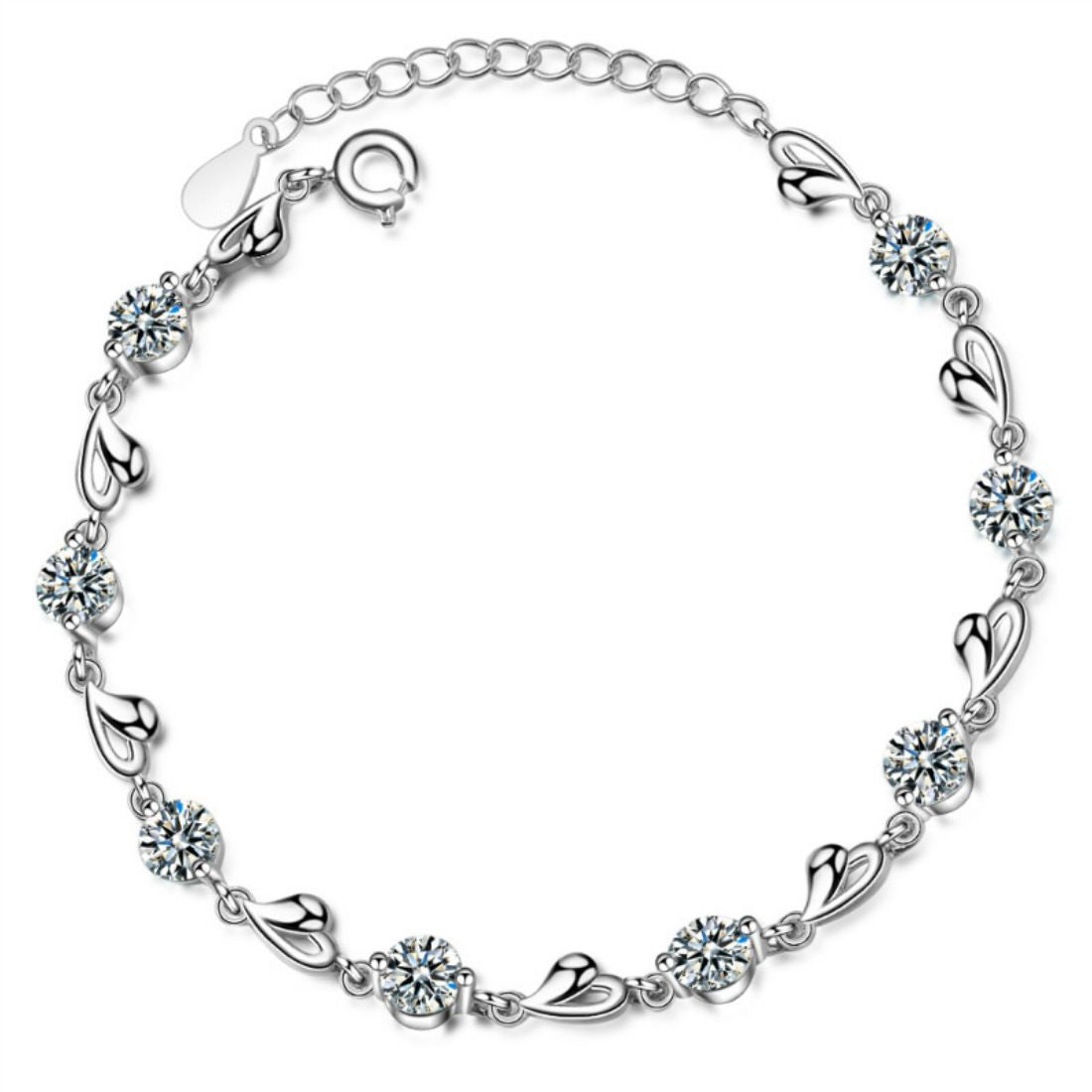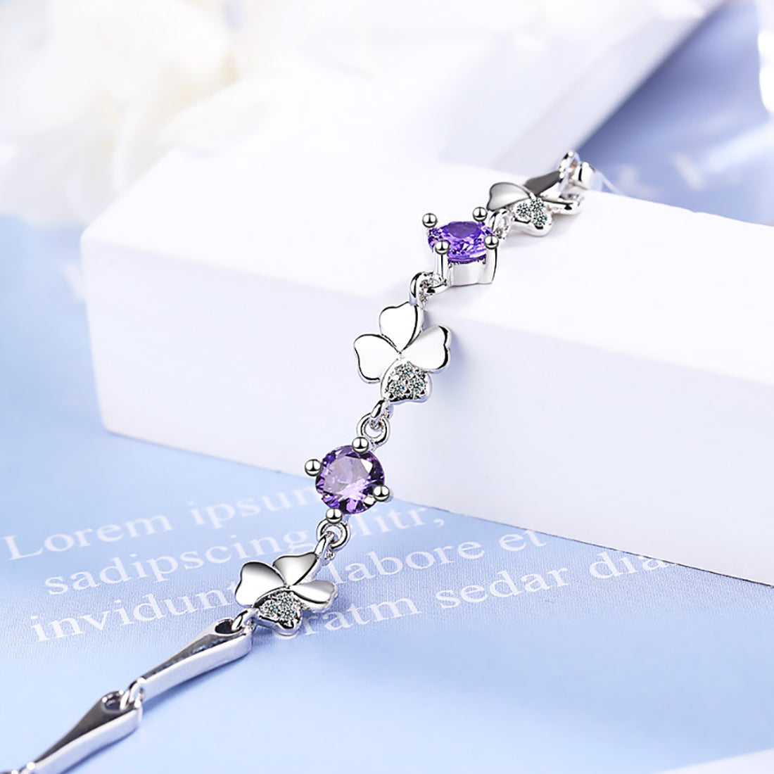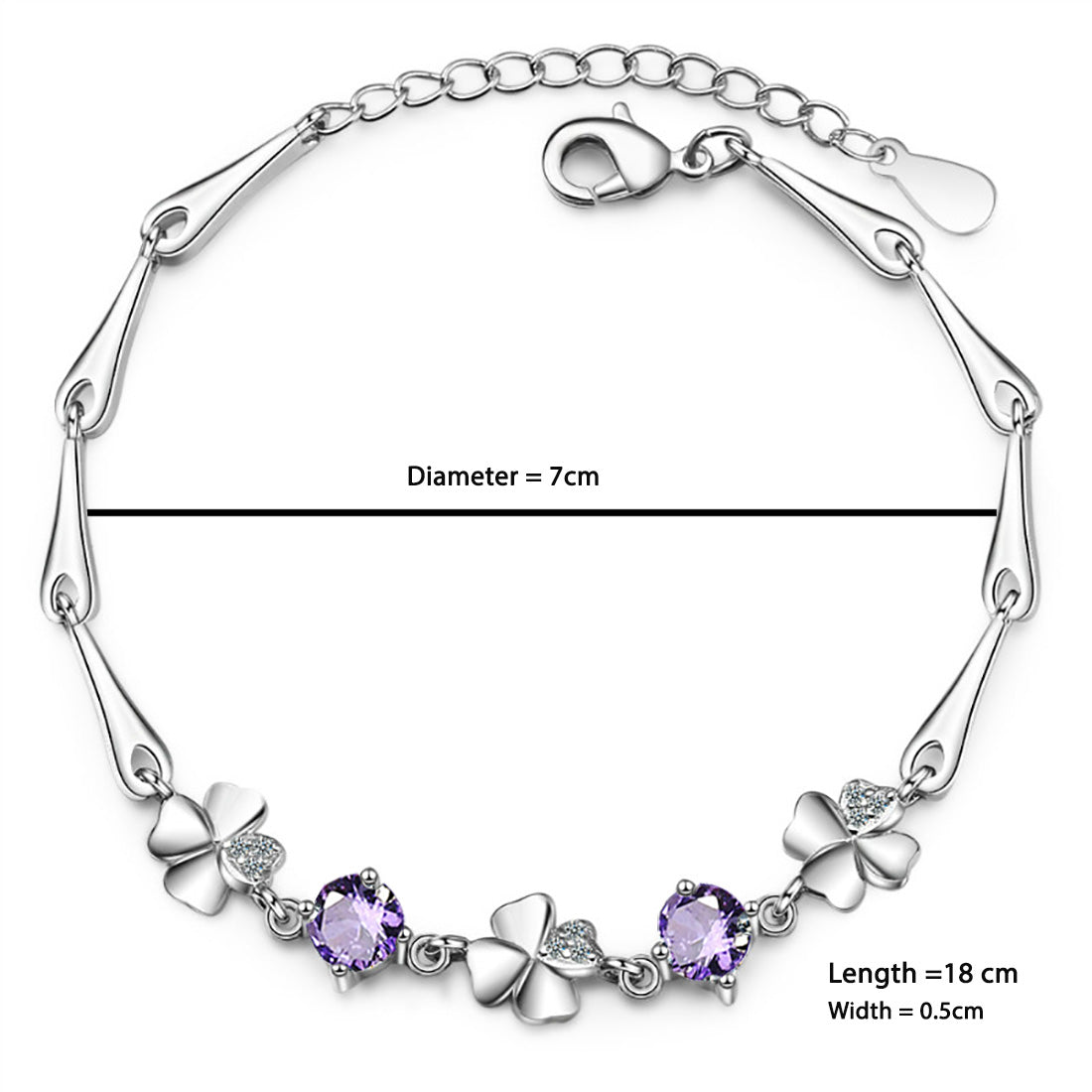 Clover/Heart Zircon Bracelet | 18K Rhodium Plated