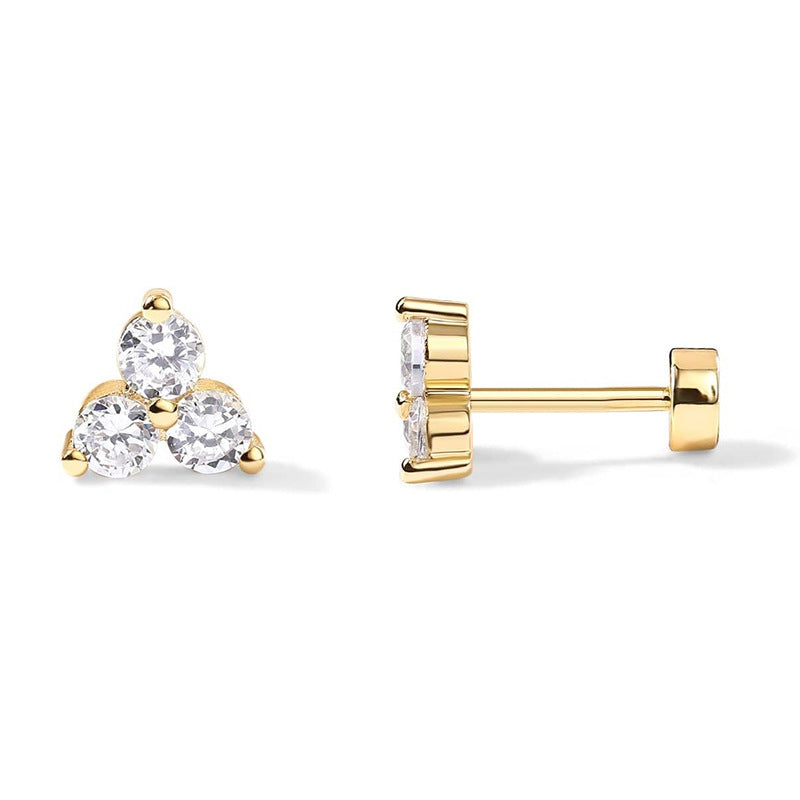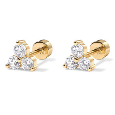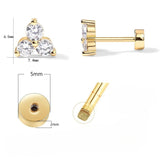3 Diamond Zircon Screw Back Studs | 14K Plated