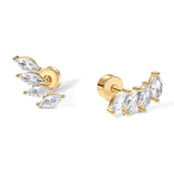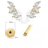 4 Leaf Zircon Flat Back Studs | 14K Plated