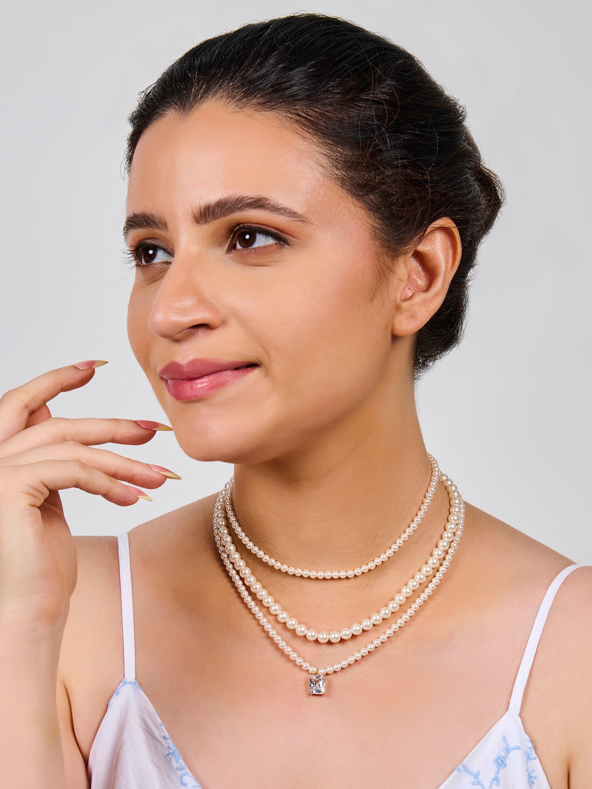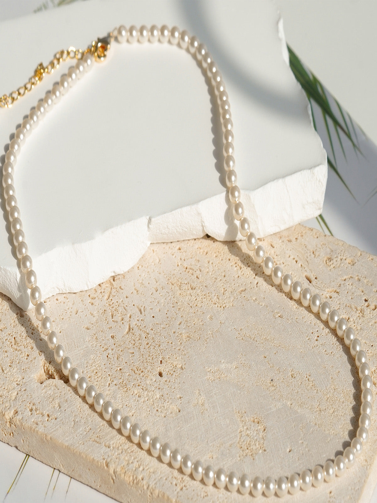 More Pearls, No Worries! Step up your necklace game with this dainty chain with 4mm pearl beaded design – a must-have for those who love a touch of classic charm with a modern edge.