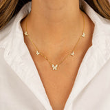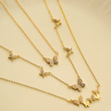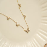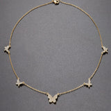 A delicate and feminine necklace chain featuring white zircon butterflies, perfect for adding a touch of elegance to any outfit. Whether layered or worn solo, it adds a soft sparkle and dreamy charm to any look. Perfect for the free-spirited and fashion-forward.