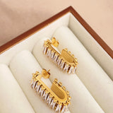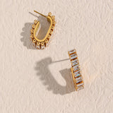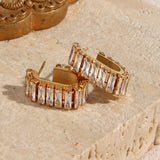 Adorn yourself With Aquastreet's 18K Gold-Plated C-shaped zircon earrings. Crafted with precision and elegance. These earrings are made of high grade 304 stainless steel and has a finish of 18K gold plating. These earrings are water resistant hypoallergenic and anti-tarnish. The earrings brings out your inner radiance and reflects sophistication and grace.