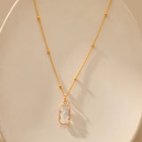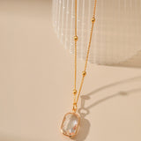 This elegant 18K gold-plated necklace featuring a simple white square zircon pendant and is perfect for everyday wear.