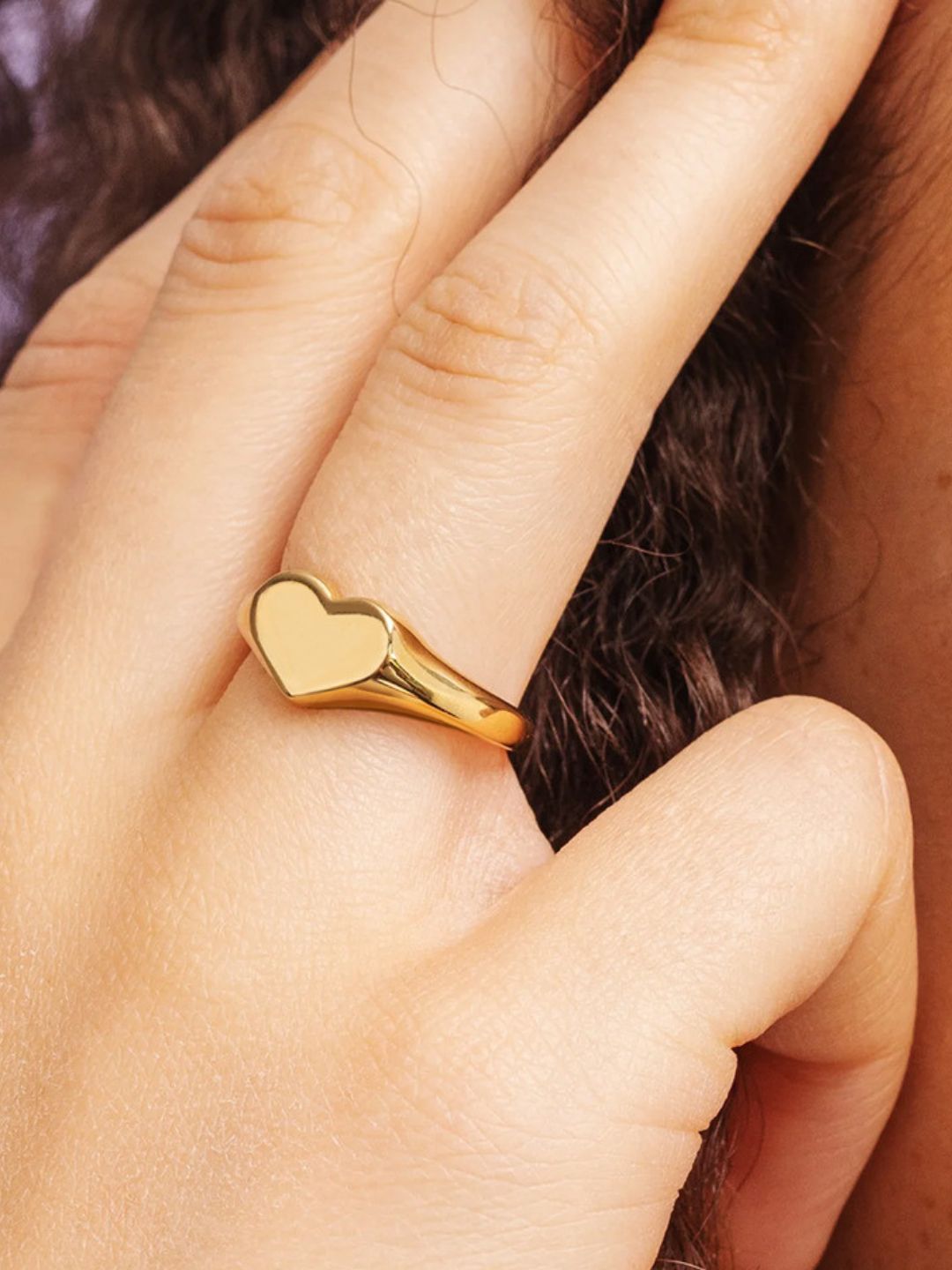 This gold-plated heart-shaped ring features a minimalist design, perfect for daily wear or special occasions, and makes a thoughtful gift for women and girls.