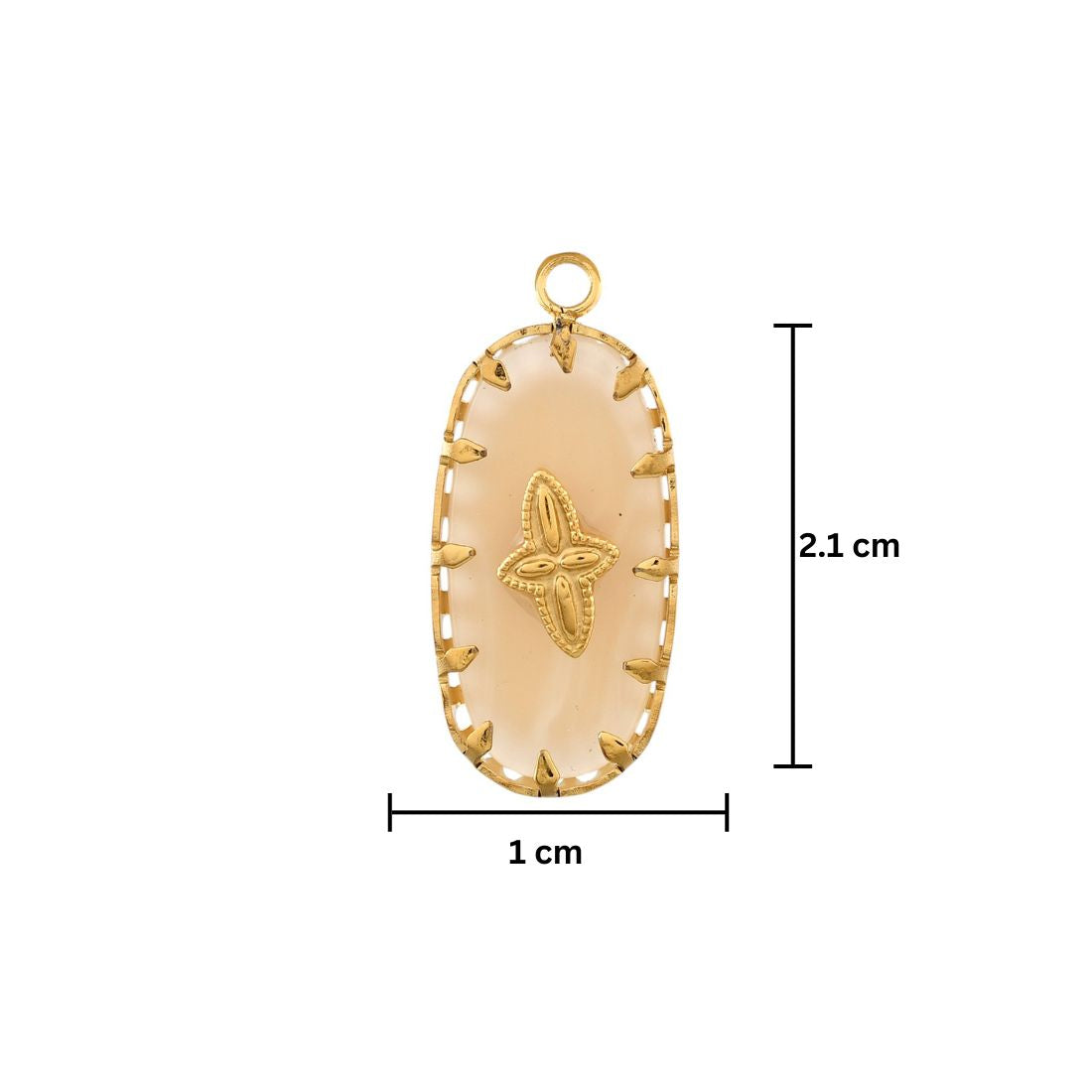 - Length of pendant = 2.1 cm, breadth = 1 cm, width = 0.3 cm