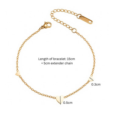 - Length of bracelet: 15cm + 5cm extender chain, heart 0.5 and 0.3cm