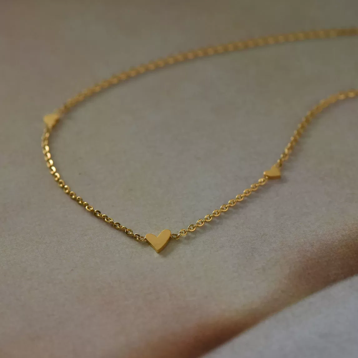 Elegant and romantic, the Amoura Heart Chain Bracelet features a delicate gold-toned chain adorned with petite heart charms that add a soft touch of charm to your wrist. Lightweight and comfortable for all-day wear, it’s perfect on its own for a minimalist statement or paired with other bracelets for a layered, chic look.