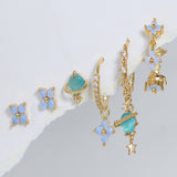 Aqua Blue Bloom Earring Set (for SINGLE EAR ONLY) | 18K Plated