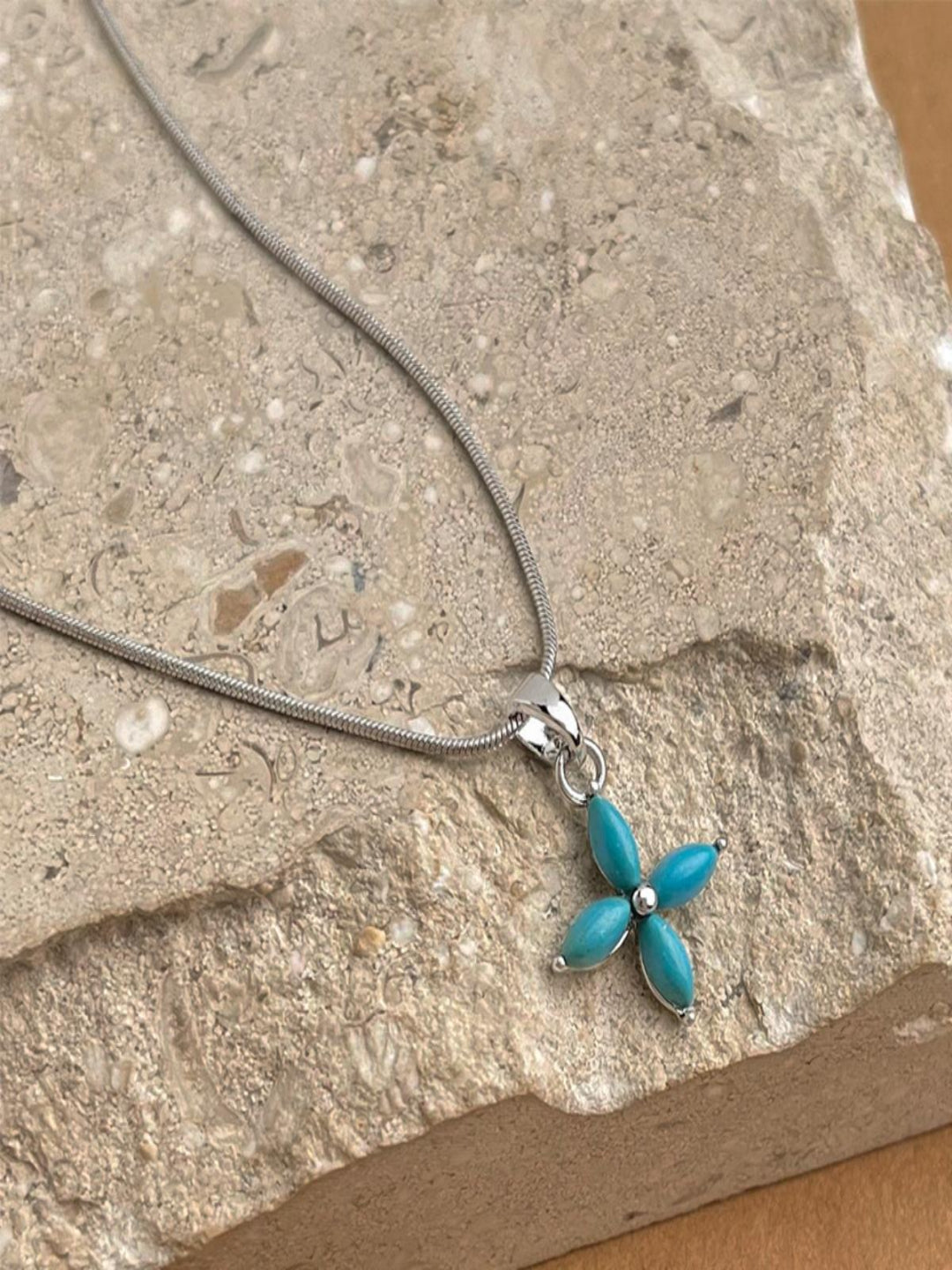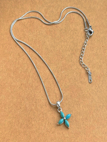 Bloom Blue Brightly! Step up your necklace game with this dainty blue enamel floral pendant – a subtle yet stunning way to add a pop of color to any outfits