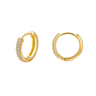 Understated yet unmistakably elegant — Aureen Zircon Hoops is your everyday essential with a refined twist. Crafted in 18K gold plating and adorned with delicate zircon stones, these huggie hoops hug the ear just right, offering a subtle sparkle from every angle. Perfect for layering or wearing solo, Aureen is the kind of classic you reach for, day after day.