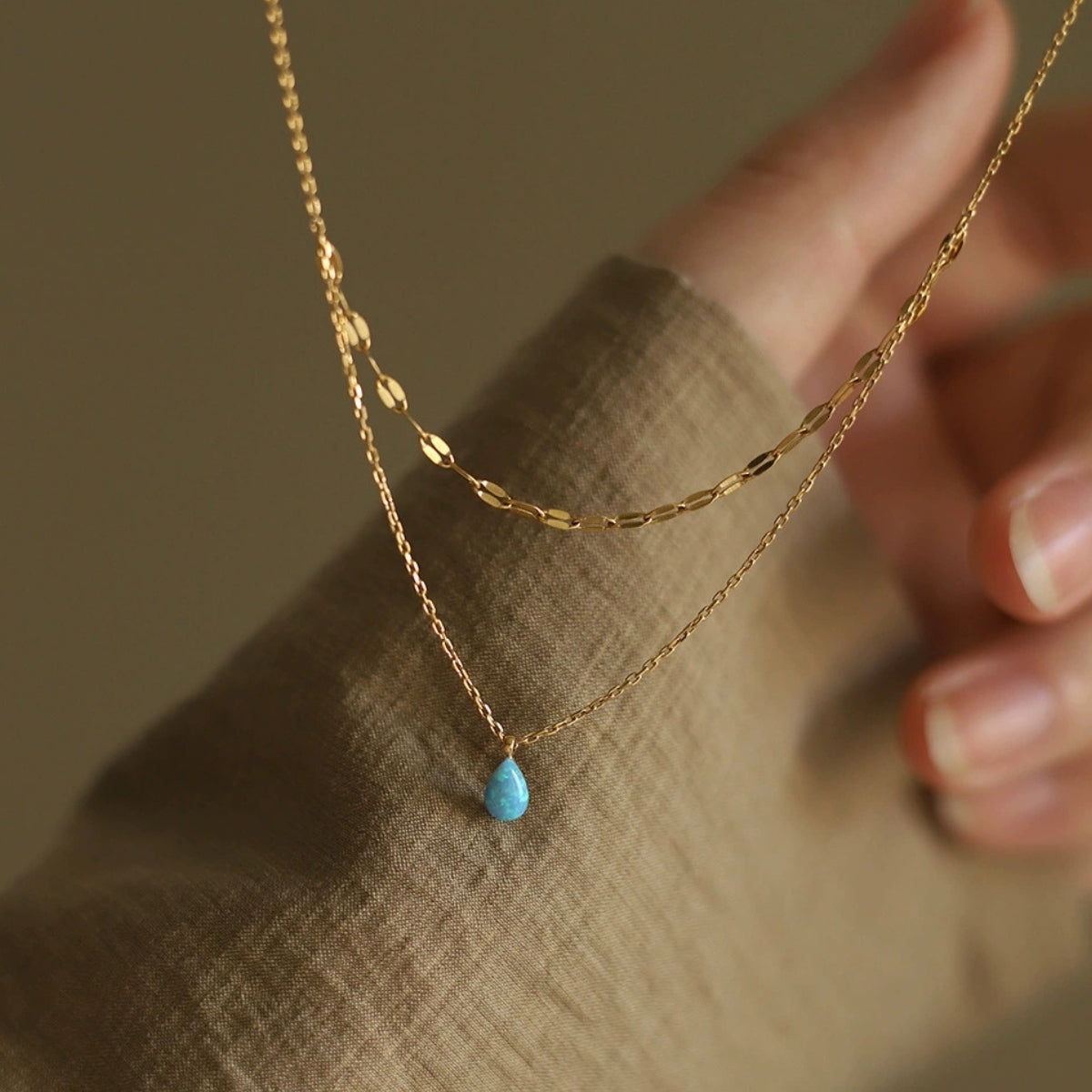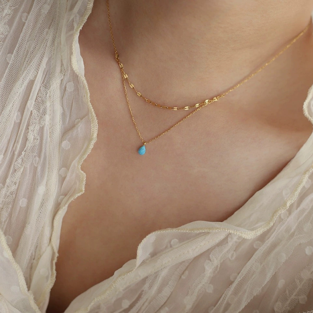Azure Drop Double-Layer Necklace | 18K Plated
