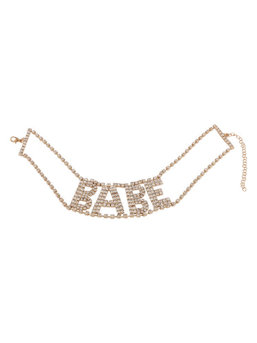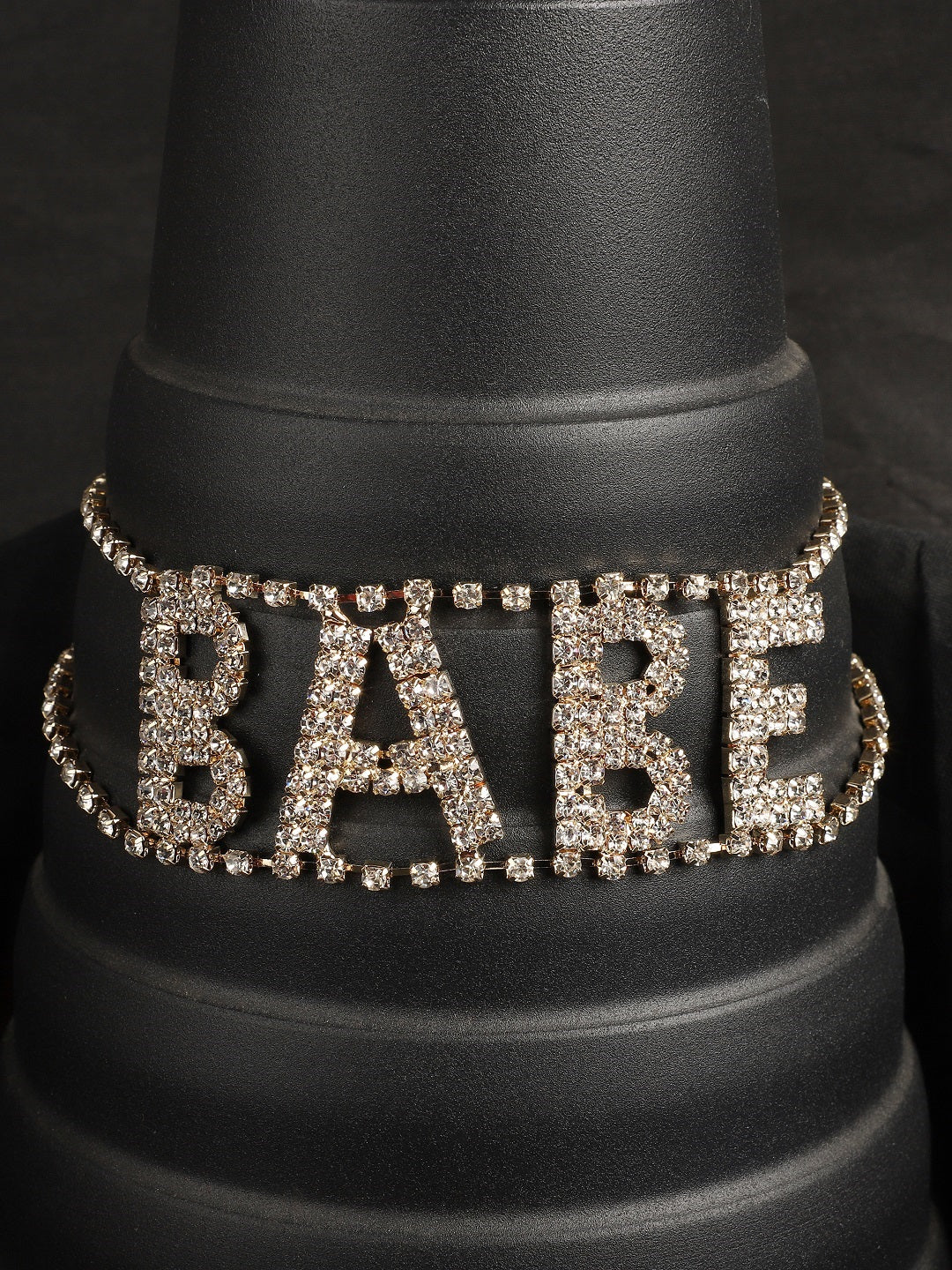 Enhance your look with our babe lettered wide collar choker necklace with rhinestones. Elegant and charming necklace that pairs effortlessly with any western and party outfits