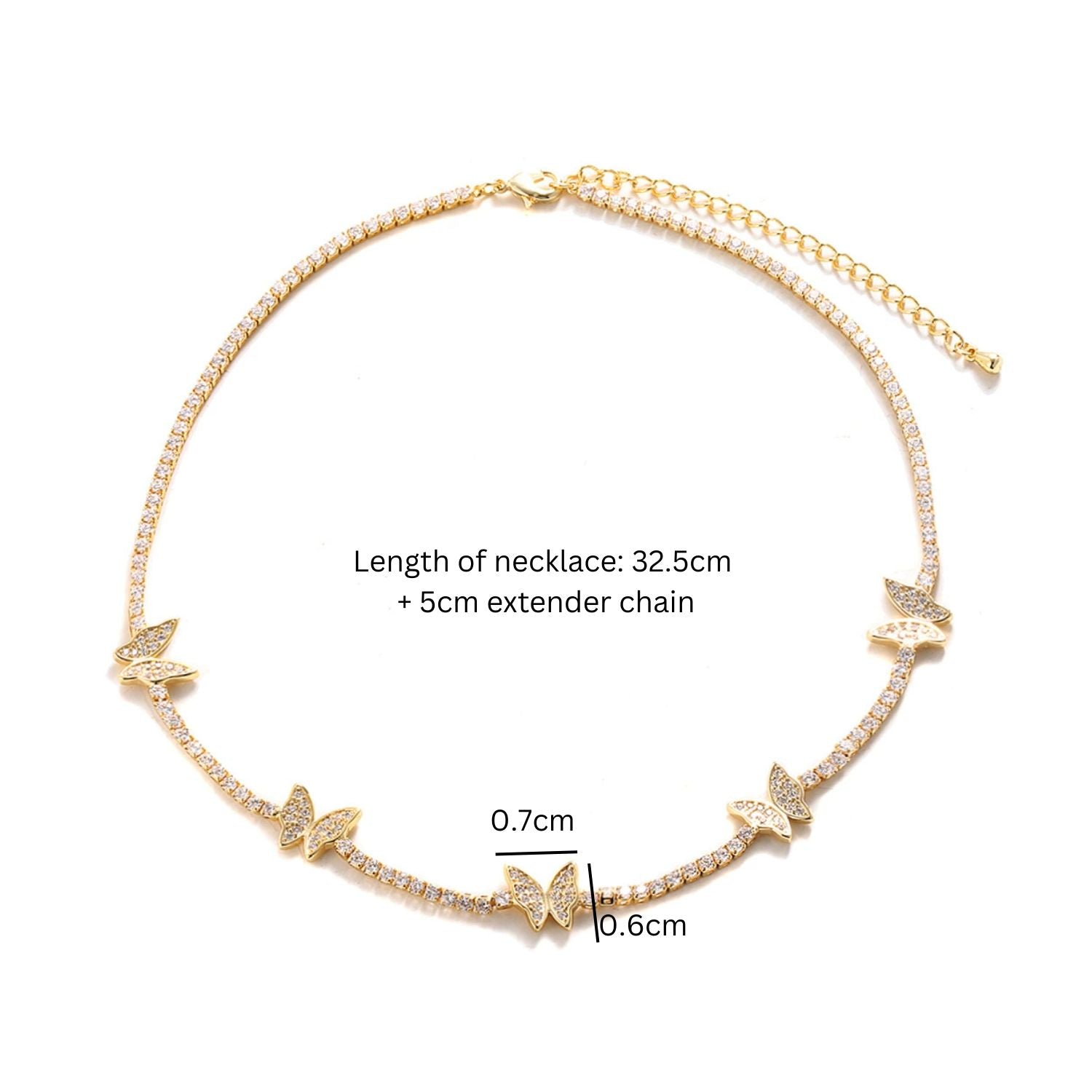 Delicate and whimsical, this butterfly chain choker necklace features sparkling zircon accents that capture elegance in every detail. Crafted with 18K gold plating and an anti-tarnish finish, this minimal yet striking piece is perfect for everyday wear or special occasions. Lightweight and versatile, it makes a charming gift for women and girls who appreciate graceful, dainty jewelry with a hint of sparkle.