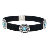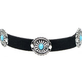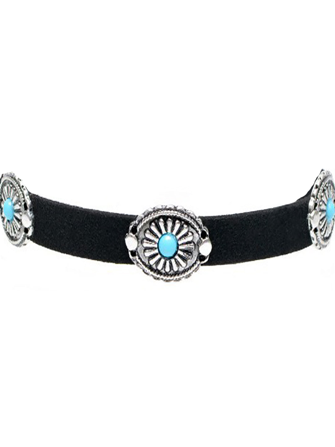 A stylish black suede choker with retro metal plating, offering a bold yet elegant statement. Perfect for adding an edgy touch to any outfit.