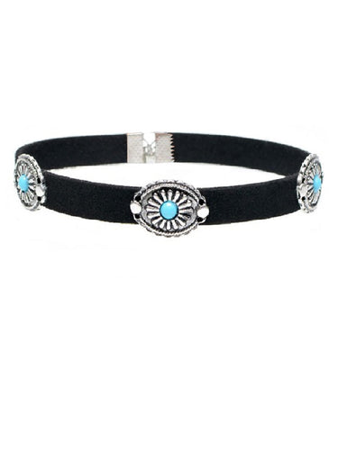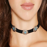 Black Retro Metal Plated Suede Collar/Choker Necklace