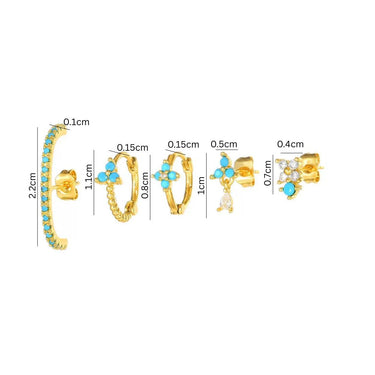 - Earring 1 length: 2.7cm, 2: length: 2.2cm, 3: length: 3.4cm, 4: length: 0.5cm, 5: length: 0.5cm