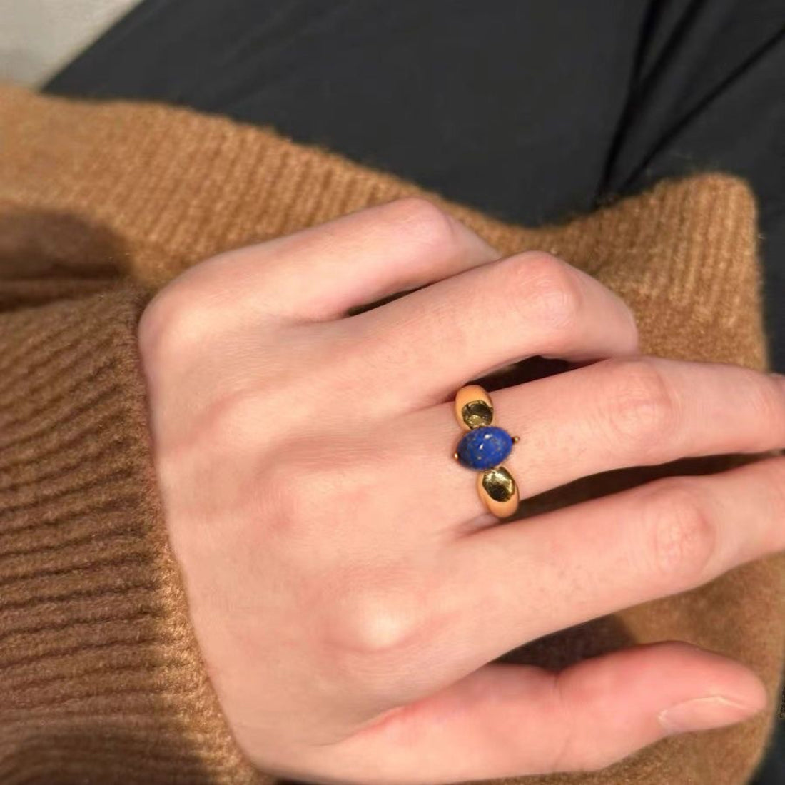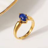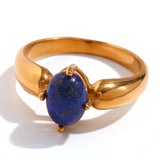 Elevate your style with this 18K gold-plated oval blue lapis ring, crafted from high-grade stainless steel. Its unique textured design adds sophistication, while anti-tarnish, waterproof, and hypoallergenic properties ensure lasting brilliance.