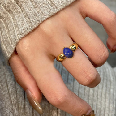 Solid Oval Lapis Ring | 18K Plated