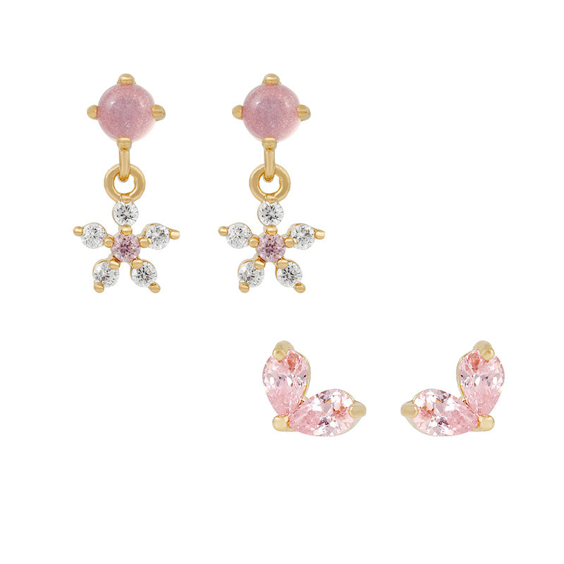 Soft Sparkle, Double the Charm! Bring a rosy glow to your ear stack with this dreamy duo! Featuring one pair of delicate pink zircon studs that radiate effortless elegance, and a second pair of sweet floral drop studs sprinkled with soft sparkle. Whether you’re mixing, matching, or stacking, these pretty pink accents are perfect for adding a gentle, feminine touch to every outfit. Stack them up for a playful vibe or wear solo for a subtle shine!