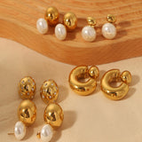 A classic blend of chunky gold and elegant pearl drop studs for a bold statement.