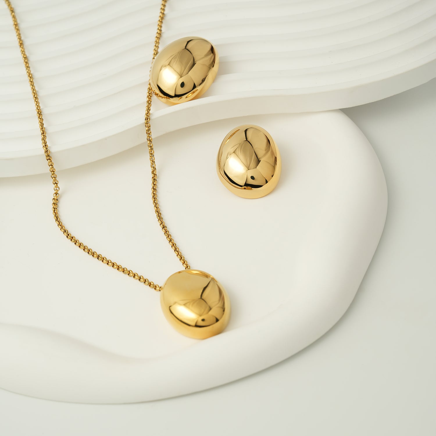 This bold oval pendant set (pendant and earrings set) is your ticket to instant style. It’s sleek, modern, and totally statement-making—perfect for elevating everything from a casual look to your party outfit. Put it on and watch it work its magic, adding the perfect pop of glamour to your day or night!