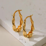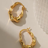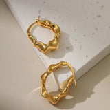 These 18K gold-plated earrings feature a unique geometric design with a wavy, irregular shape, adding a bold, contemporary touch to your look.