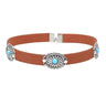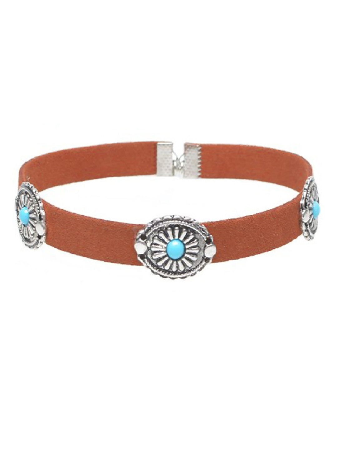 A stylish brown suede choker with retro metal plating, offering a bold yet elegant statement. Perfect for adding an edgy touch to any outfit.